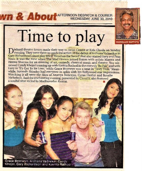 The MAD HORSES Theater Troupe has been featured in newspapers and magazines hundreds of times. (Many of Gary’s short plays are on youtube: Gary Richardson’s Mad Horses at Kala Ghoda.)