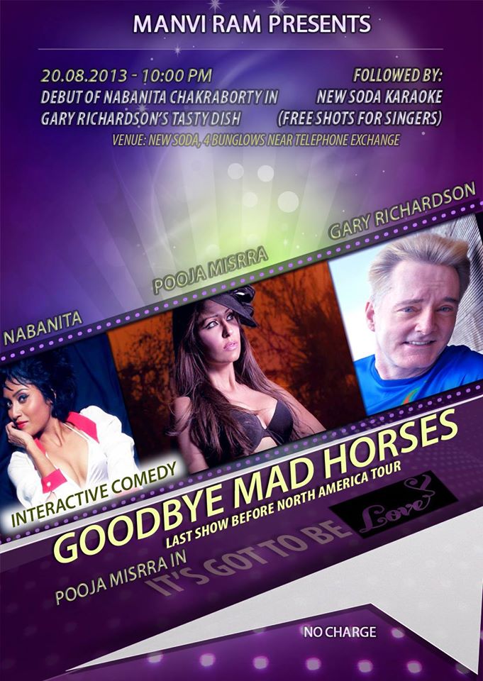 Gary’s ACTORS EQUITY career magically began in 1977, when he was catapulted into the Broadway Touring Cast of the Tony Award-winning: Equus (starring George Maharis). His next play (1978) was the box-office hit Romanoff and Juliet (starring Avery Schreiber) at Chicago’s Pheasant Run Theater. For twenty years, Gary did theater in India, performing Macbeth; Death of a Salesman and a dozen of his short plays with Indian theater legend -and mentor- Alyque Padamsee. Gary is the founder and creative director of Mumbai’s the MAD HORSES Theater Troupe. (Most of the photos below are from backstage at MAD HORSES shows. Also, if you see me wearing the same shirt or suit various times, it is a stage costume.)